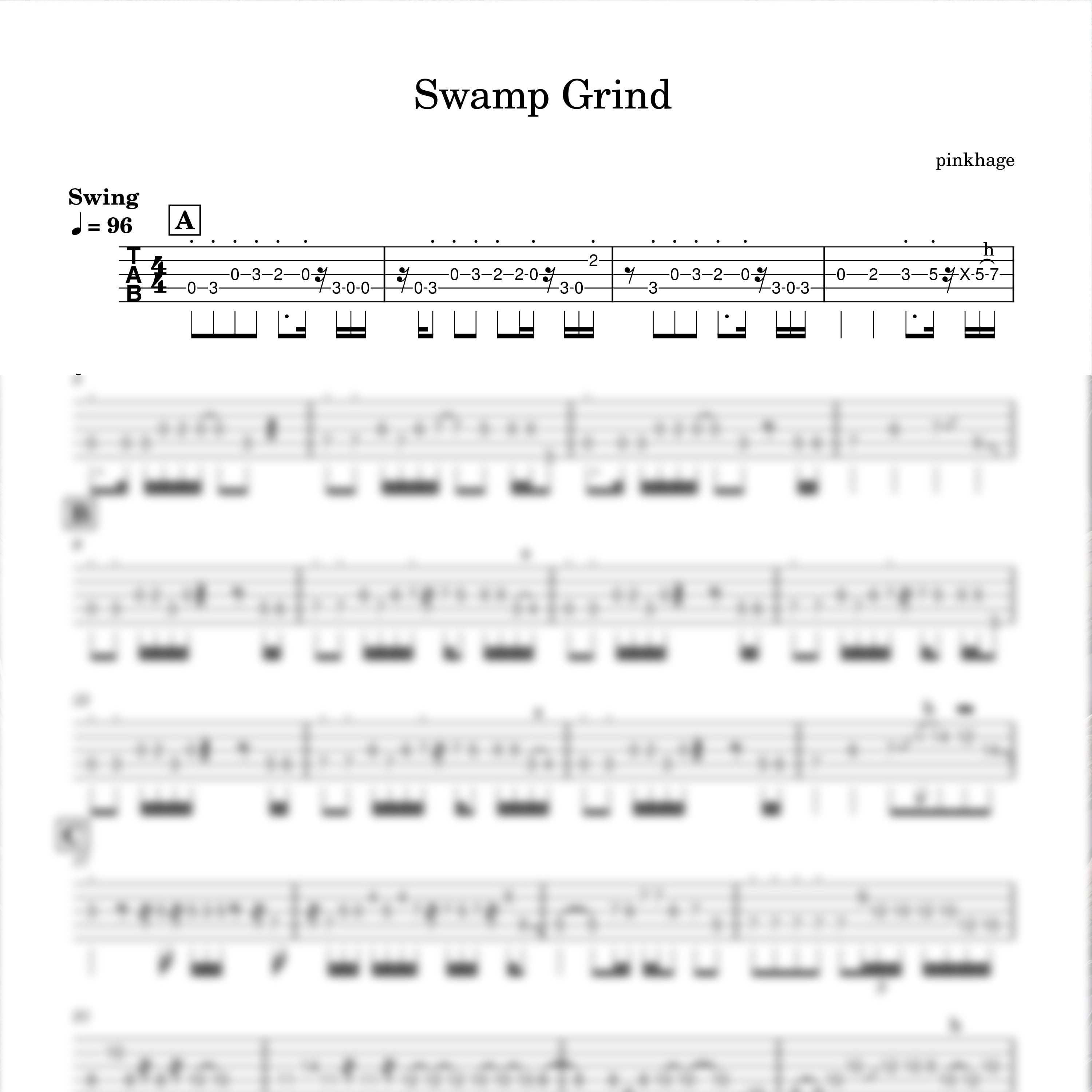 YouTubeで公開した曲「Swamp Grind」の完全書き起こし譜面です。 超高難易度ですが、弾くことができればあなたはもはや人類を超越したベーシストになれるでしょう。